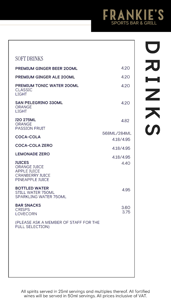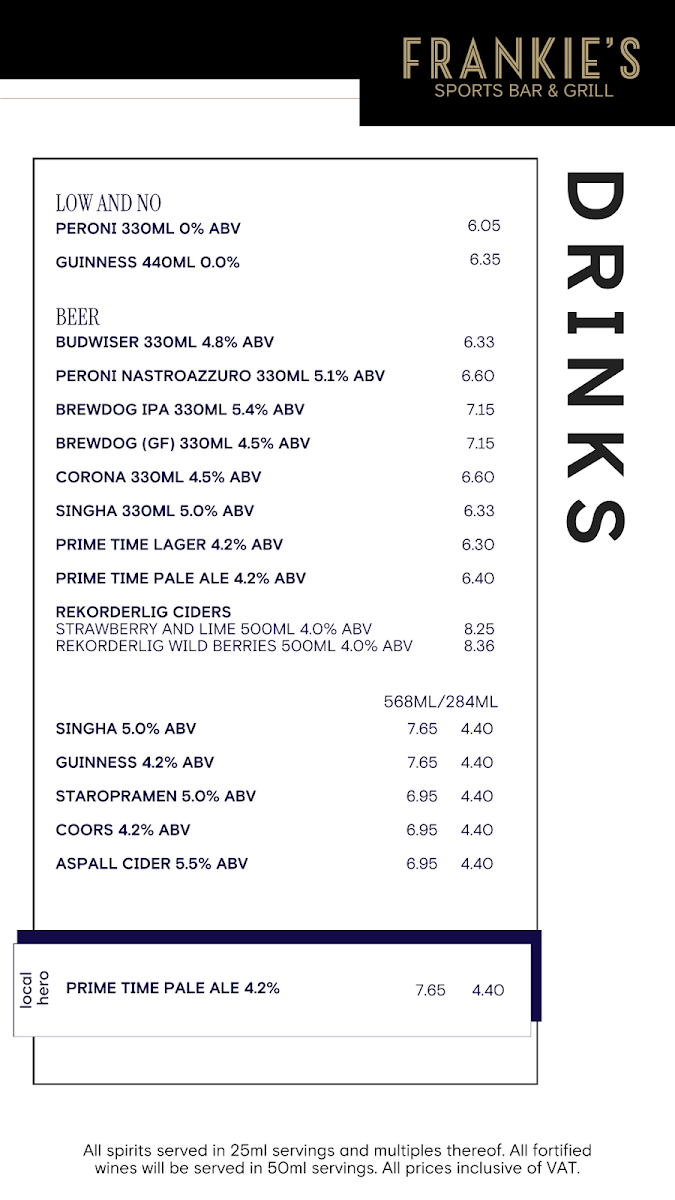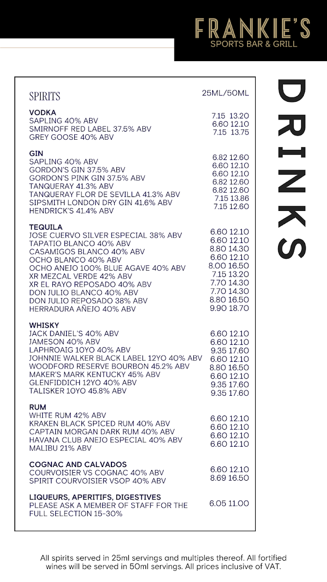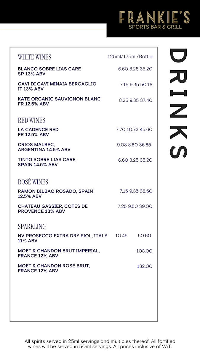 In addition to the great food, Frankie's has an extensive drinks menu that includes an array of craft beers, cocktails, and a fine selection of wines. It's the ideal place to unwind after a long day, with friendly service and a relaxed atmosphere that makes it perfect for both casual and celebratory occasions.